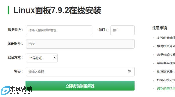 3、另外寶塔官方現在提供在線安裝,只需要在線輸入服務器信息就可以輕松安裝,是我等小白的福音!