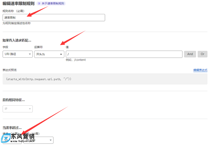 速率限制匹配運算符包含輸入英文 / 是關鍵,也代表網站所有目錄都匹配